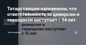 Татарстанцам напомнили, что ответственность за диверсии и терроризм наступает с 14 лет
